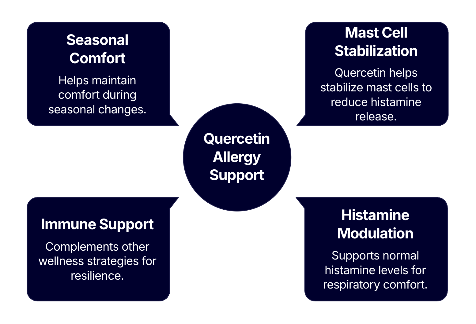 The mechanisms behind quercetin's support for seasonal comfort include: