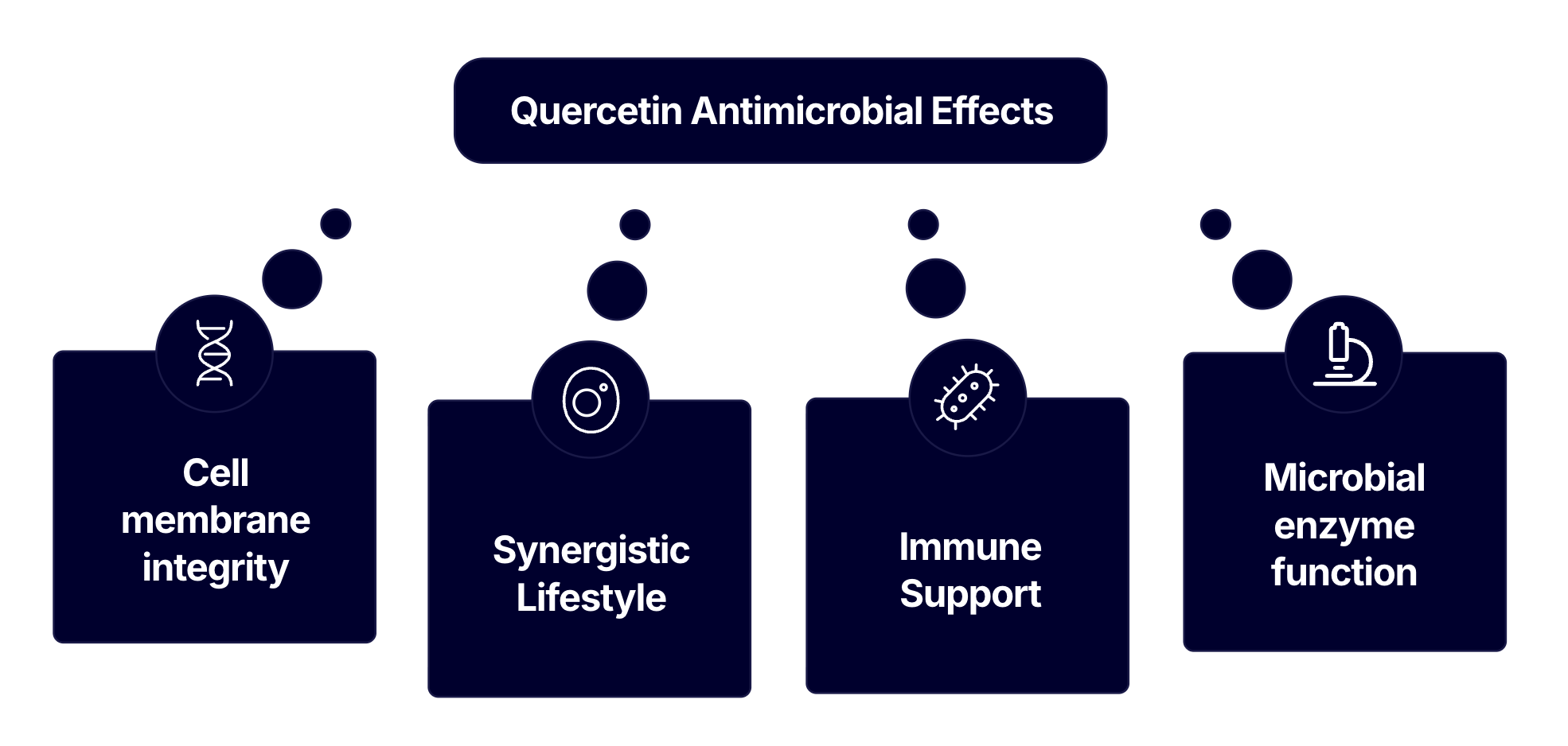 The quercetin antimicrobial effects have been demonstrated against various pathogens in laboratory studies. This natural plant compound appears to support the body's natural defenses through multiple mechanisms.