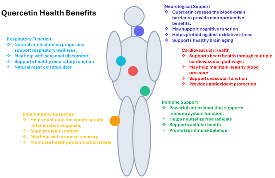 What makes quercetin truly special is its versatility in supporting various aspects of health. The quercetin health benefits extend beyond basic antioxidant protection to include specific support for neurological function, immune response, and cellular health. As research continues to unfold, we're discovering just how this natural compound works within the body to support overall wellbeing.