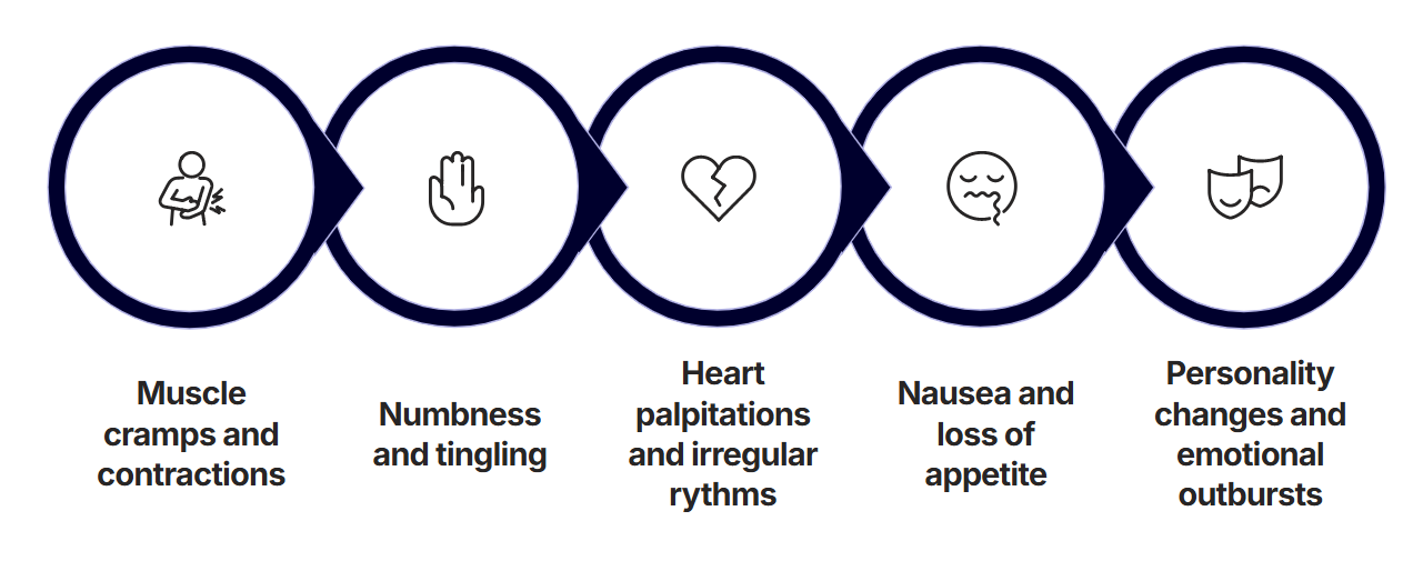 Magnesium deficiency manifests through a spectrum of symptoms that often mimic other conditions.