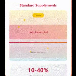 Digestive Degradation: Traditional zinc supplements are vulnerable to stomach acid and can form insoluble complexes with phytates and other compounds in your diet, dramatically reducing how much zinc actually reaches your bloodstream.